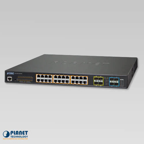 L2+/L4 24-Port 10/100/1000T 75W Ultra PoE with 4 shared SFP + 4-Port 10G SFP+ Managed Switch, with Hardware Layer3 IPv4/IPv6 Static Routing, ?W/ 48V Redundant Power (400W PoE Budget, ONVIF) – (GS-5220-24UP4XR)